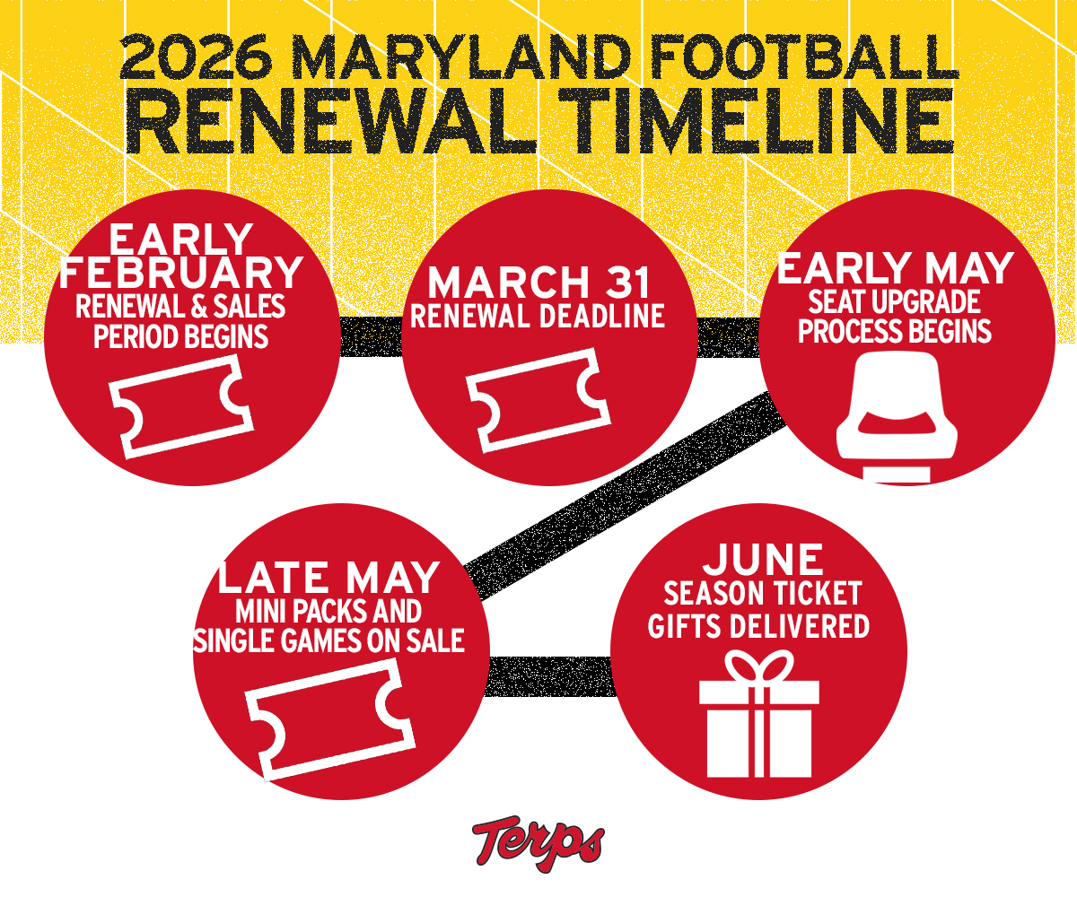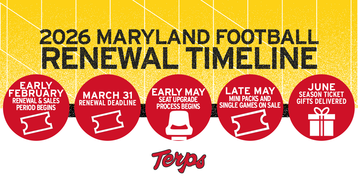 Season ticket members can add a season chairback to guarantee a chairback at SECU Stadium for every home game. Once installed at your seat, it remains there for the entire season — no setup required on gameday, just settle in and enjoy the game. New in 2026, in response to fan feedback, lower bowl season ticket members will enjoy wider, more comfortable chairbacks, while upper-level sections feature refreshed chairback inventory.